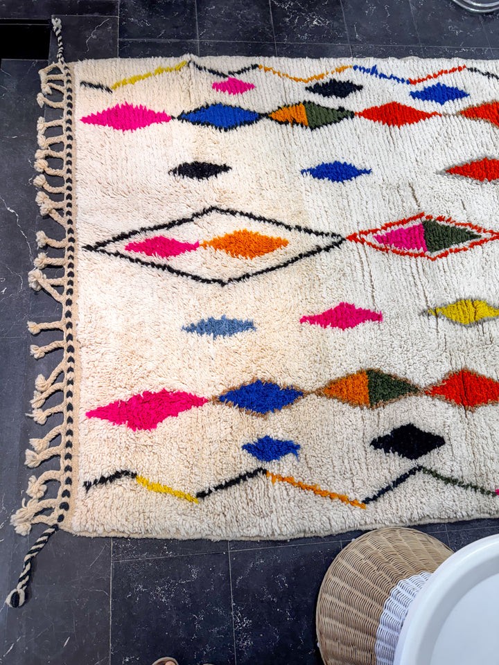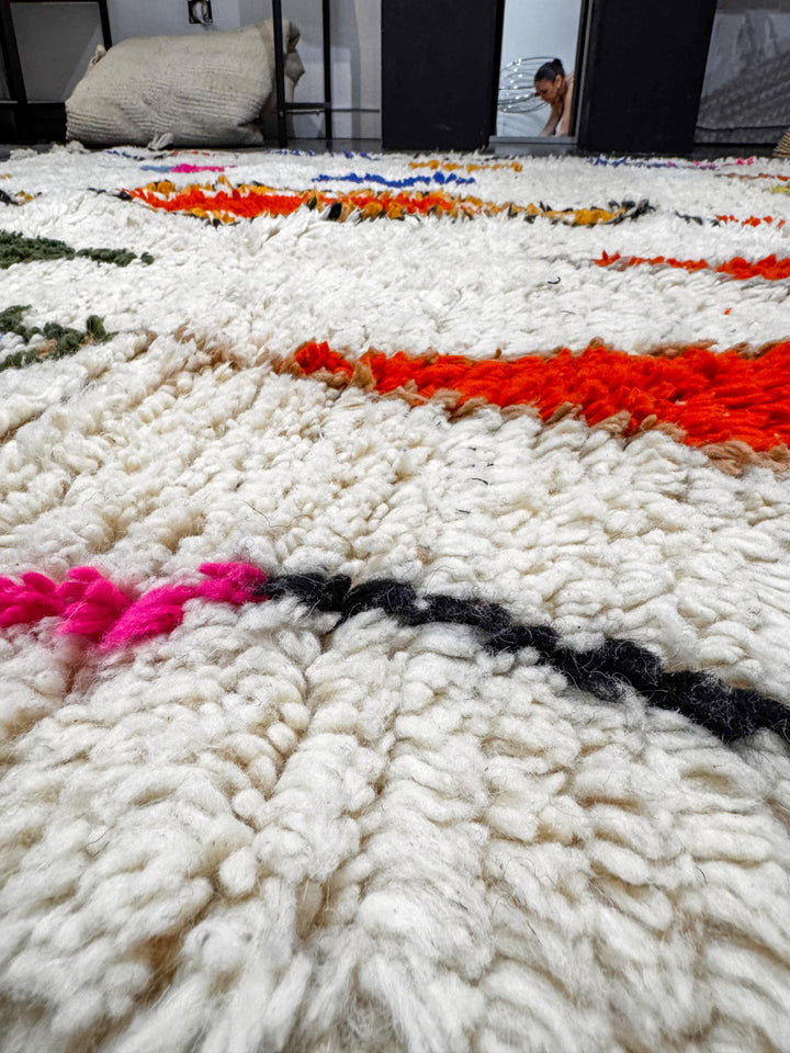 🖐️ Il est essentiel de souligner que chaque tapis est une pièce entièrement confectionnée à la main par des tisseuses expertes, perpétuant un savoir-faire traditionnel transmis de génération en génération. Contrairement aux produits fabriqués en série, les petites imperfections et variations de couleur font partie intégrante de son histoire, ajoutant ainsi à son caractère unique, à sa beauté et à sa valeur.
