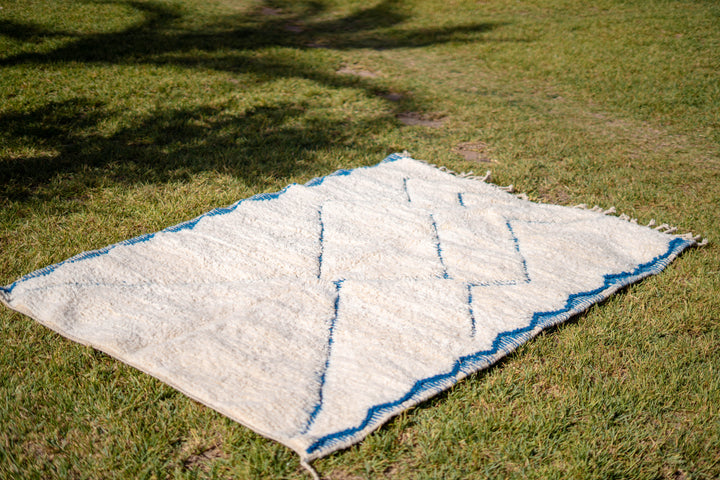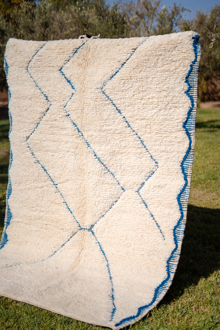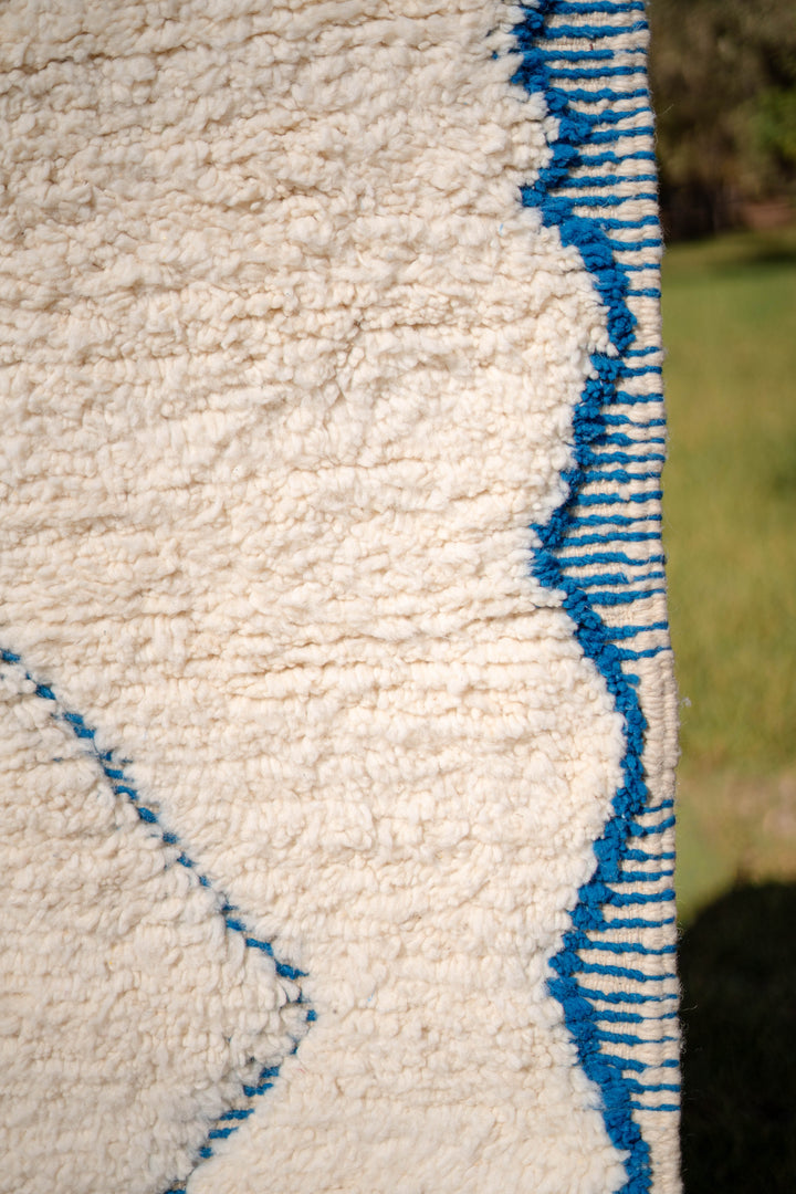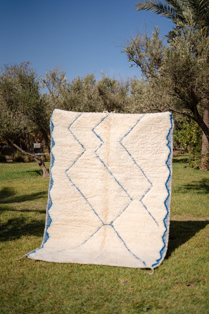 "BLUE RIVER" 236x164cm: Tapis Beni Ouarain 100% laine