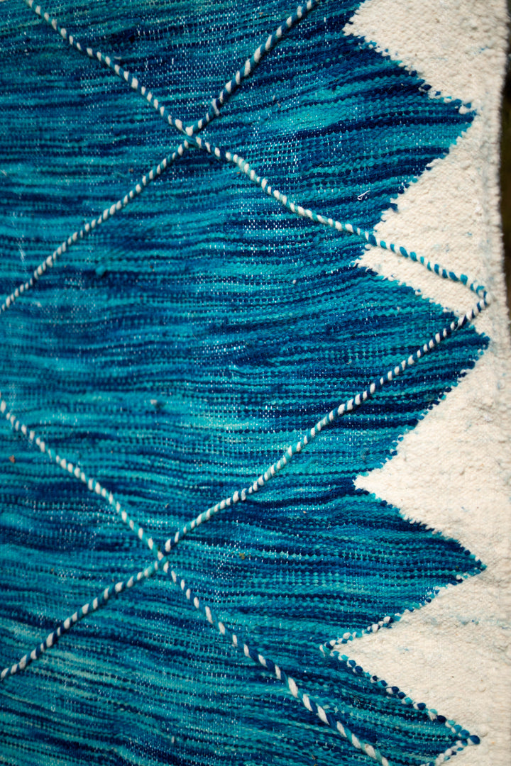 Les Kilims berbères Zanafi de Maison Mazhar sont fabriqués à la main par des femmes berbères du haut Atlas Marocain. Leur maîtrise des techniques de tissage complexe donne naissance à des tapis d'une qualité exceptionnelle, à la fois légers et résistants, 100 % laine.