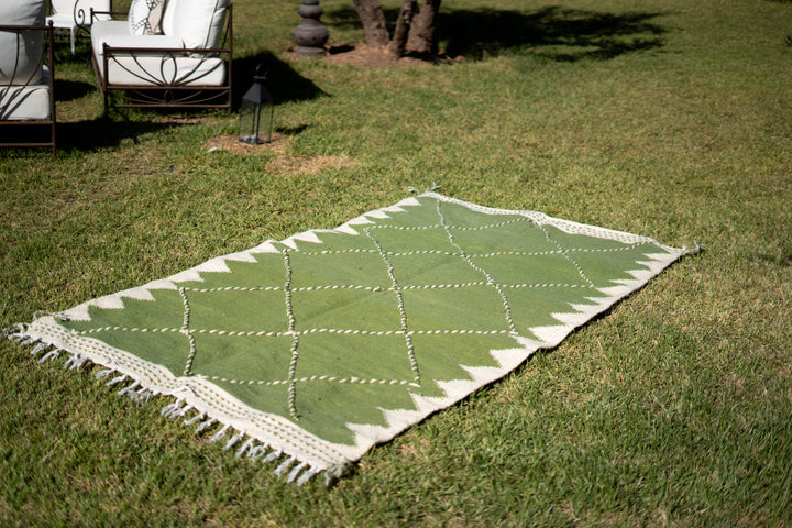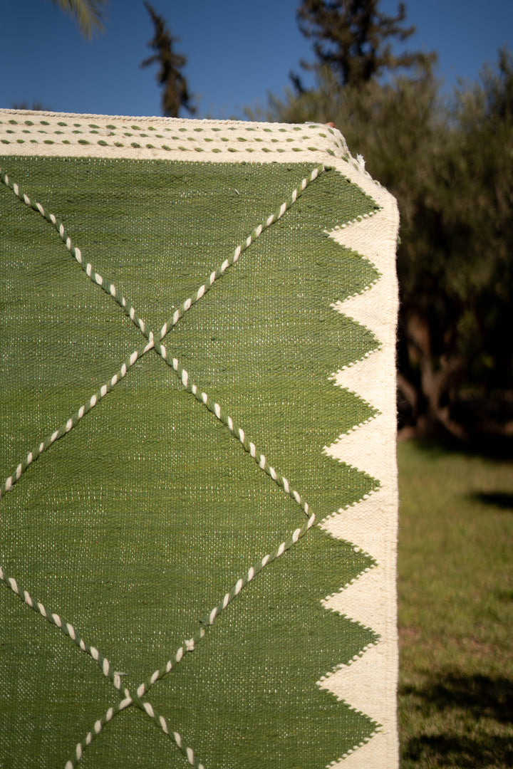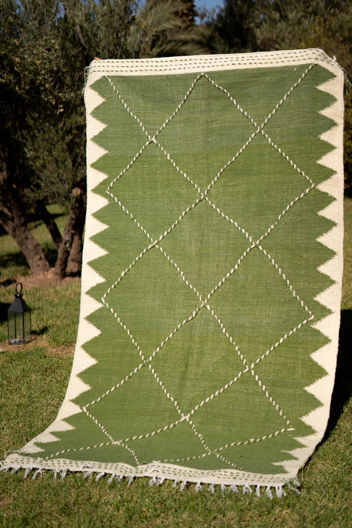 Polyvalents et fonctionnels, nos Kilims Zanafi peuvent être utilisés dans toutes les pièces de la maison : en tant que descente de lit , tapis de salon ou de salle à manger et même en terrasse.