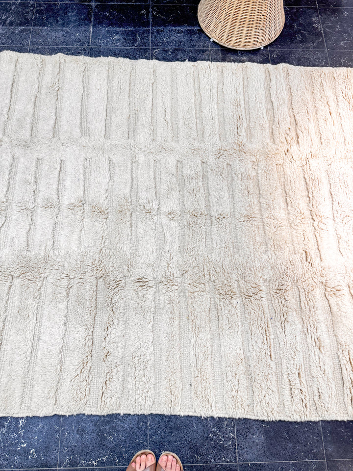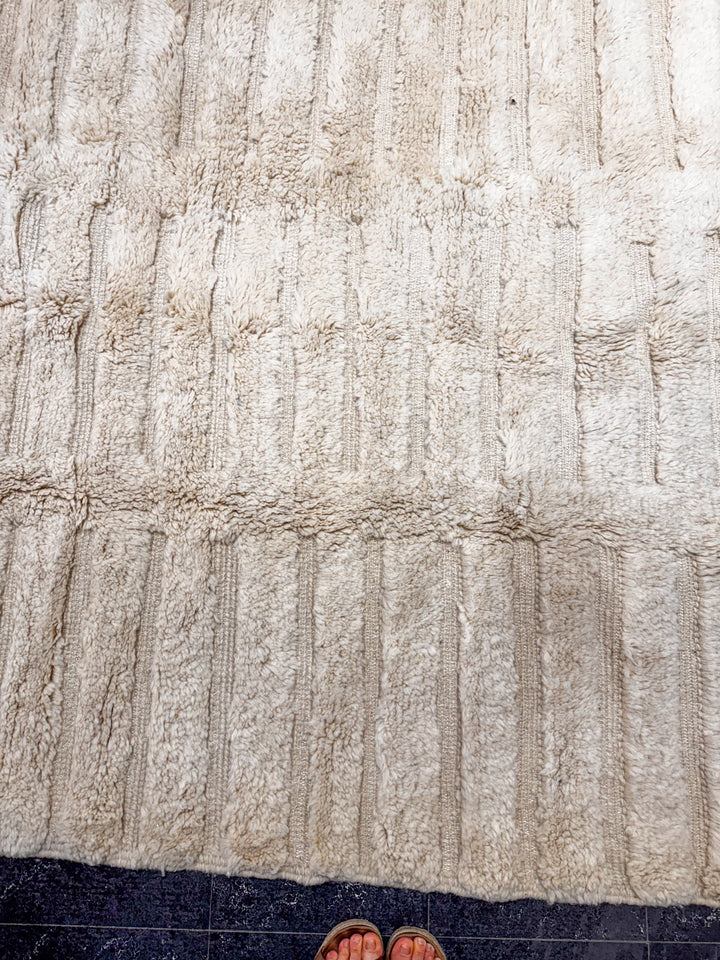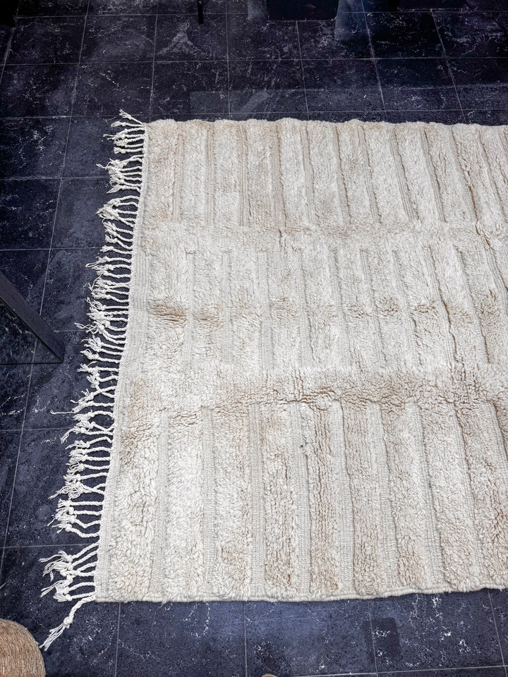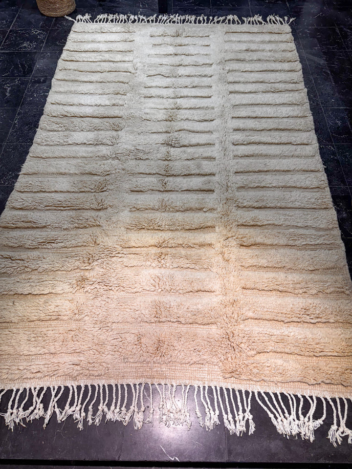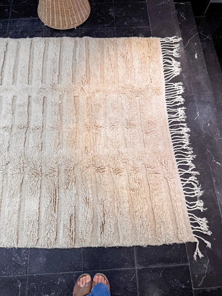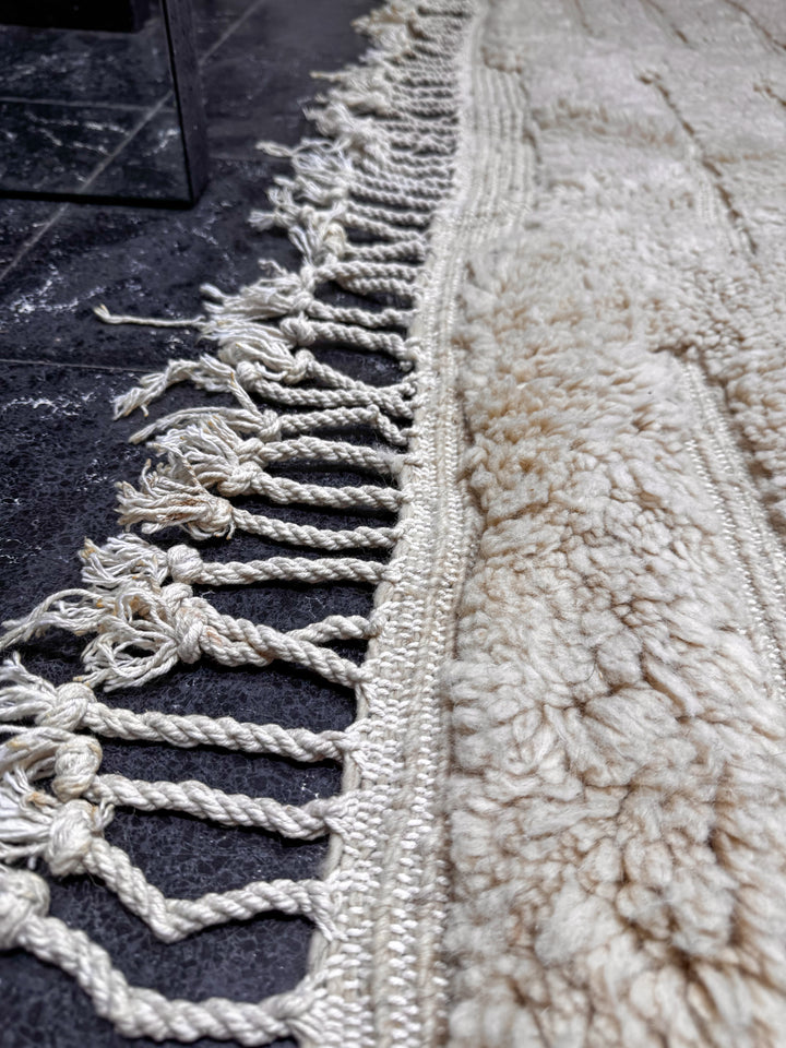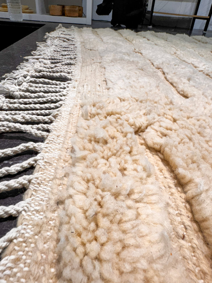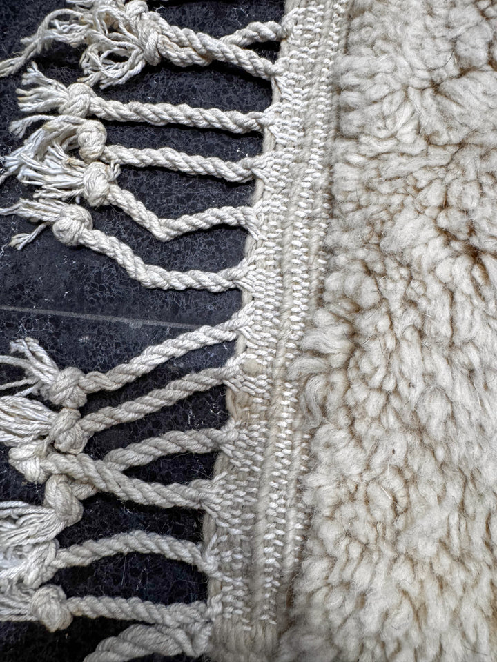 🖐️ Il est essentiel de souligner que chaque tapis est une pièce entièrement confectionnée à la main par des tisseuses expertes, perpétuant un savoir-faire traditionnel transmis de génération en génération. Contrairement aux produits fabriqués en série, les petites imperfections et variations de couleur font partie intégrante de son histoire, ajoutant ainsi à son caractère unique, à sa beauté et à sa valeur.