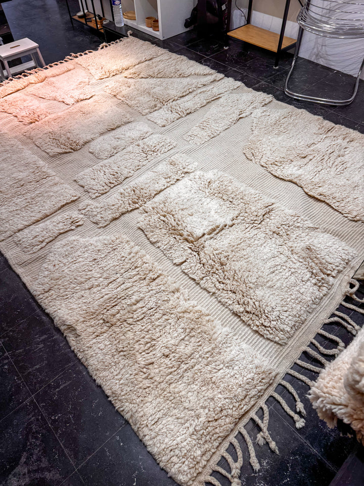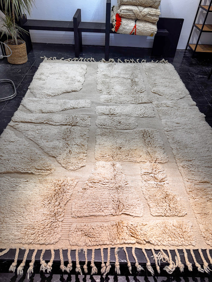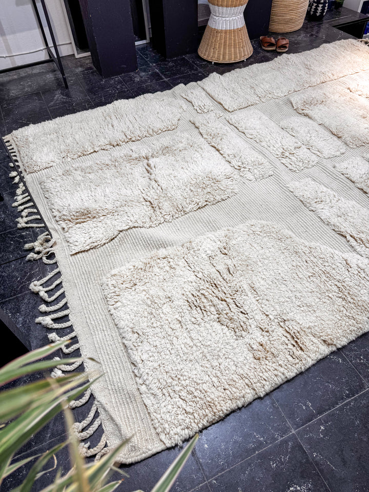 "MILKY": 283cm x 206cm Tapis Beni Ouarain 100% laine