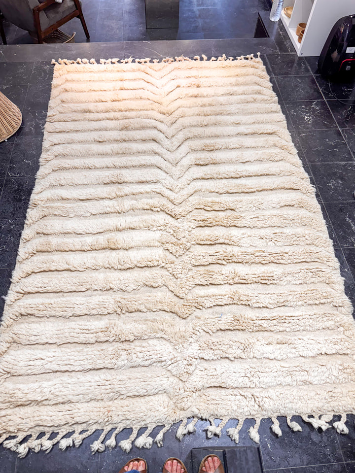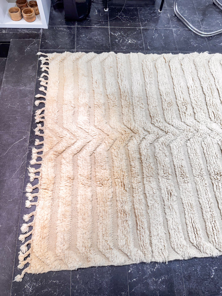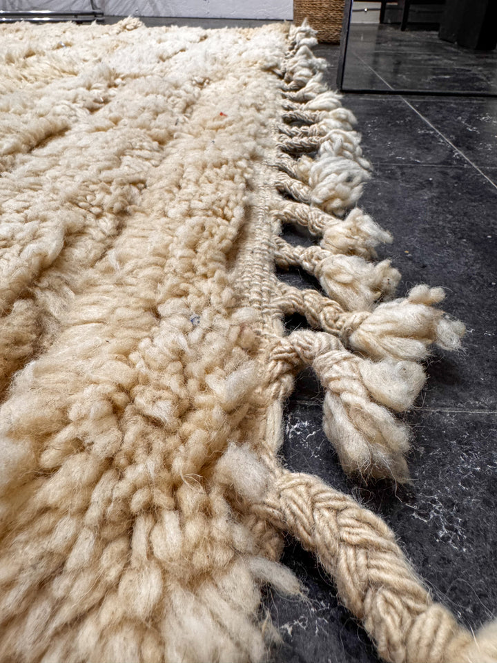 🖐️ Il est essentiel de souligner que chaque tapis est une pièce entièrement confectionnée à la main par des tisseuses expertes, perpétuant un savoir-faire traditionnel transmis de génération en génération. Contrairement aux produits fabriqués en série, les petites imperfections et variations de couleur font partie intégrante de son histoire, ajoutant ainsi à son caractère unique, à sa beauté et à sa valeur.