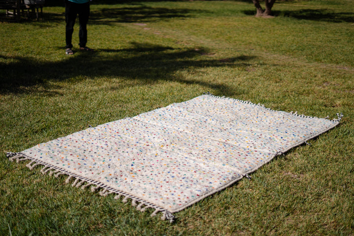 🖐️ Il est essentiel de souligner que chaque tapis est une pièce entièrement confectionnée à la main par des tisseuses expertes, perpétuant un savoir-faire traditionnel transmis de génération en génération. Contrairement aux produits fabriqués en série, les petites imperfections et variations de couleur font partie intégrante de son histoire, ajoutant ainsi à son caractère unique, à sa beauté et à sa valeur.