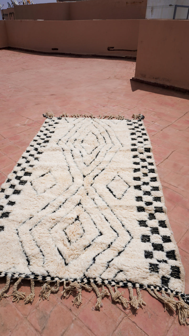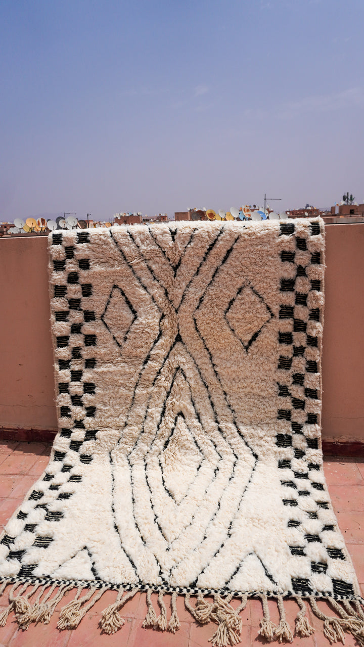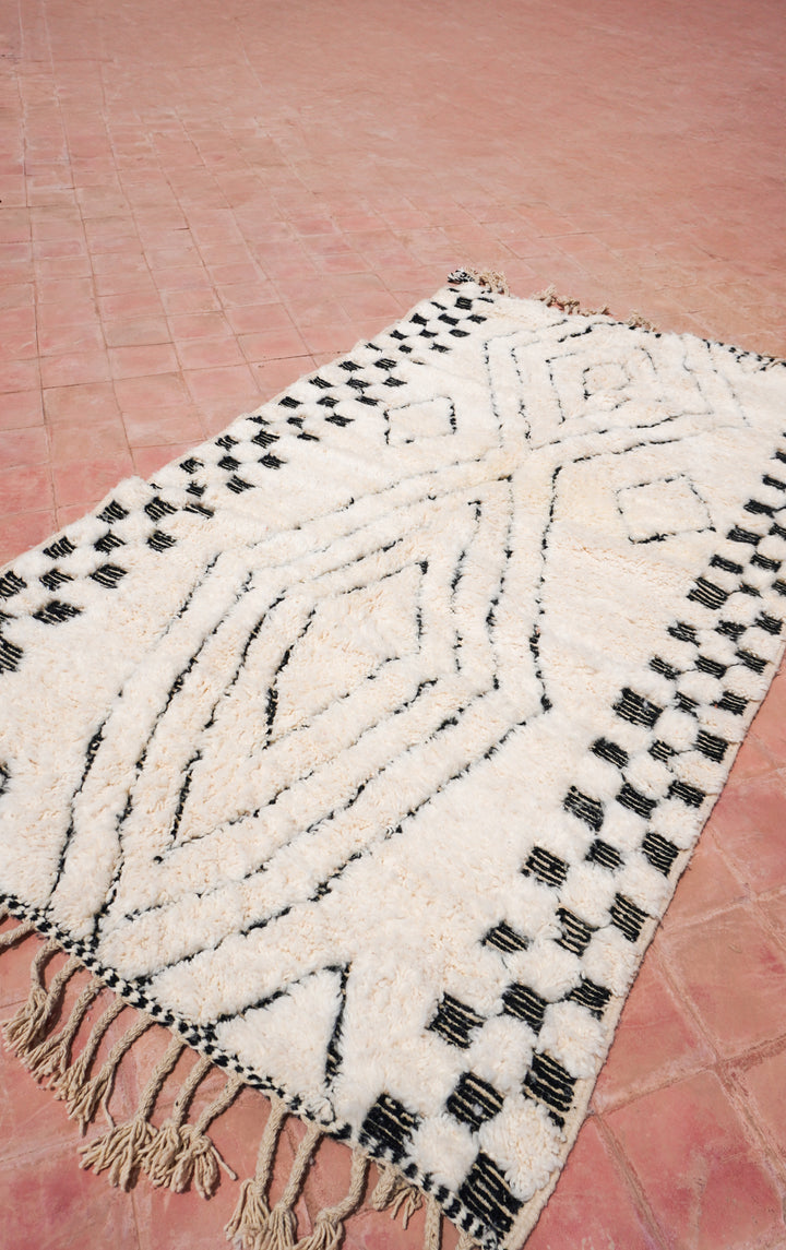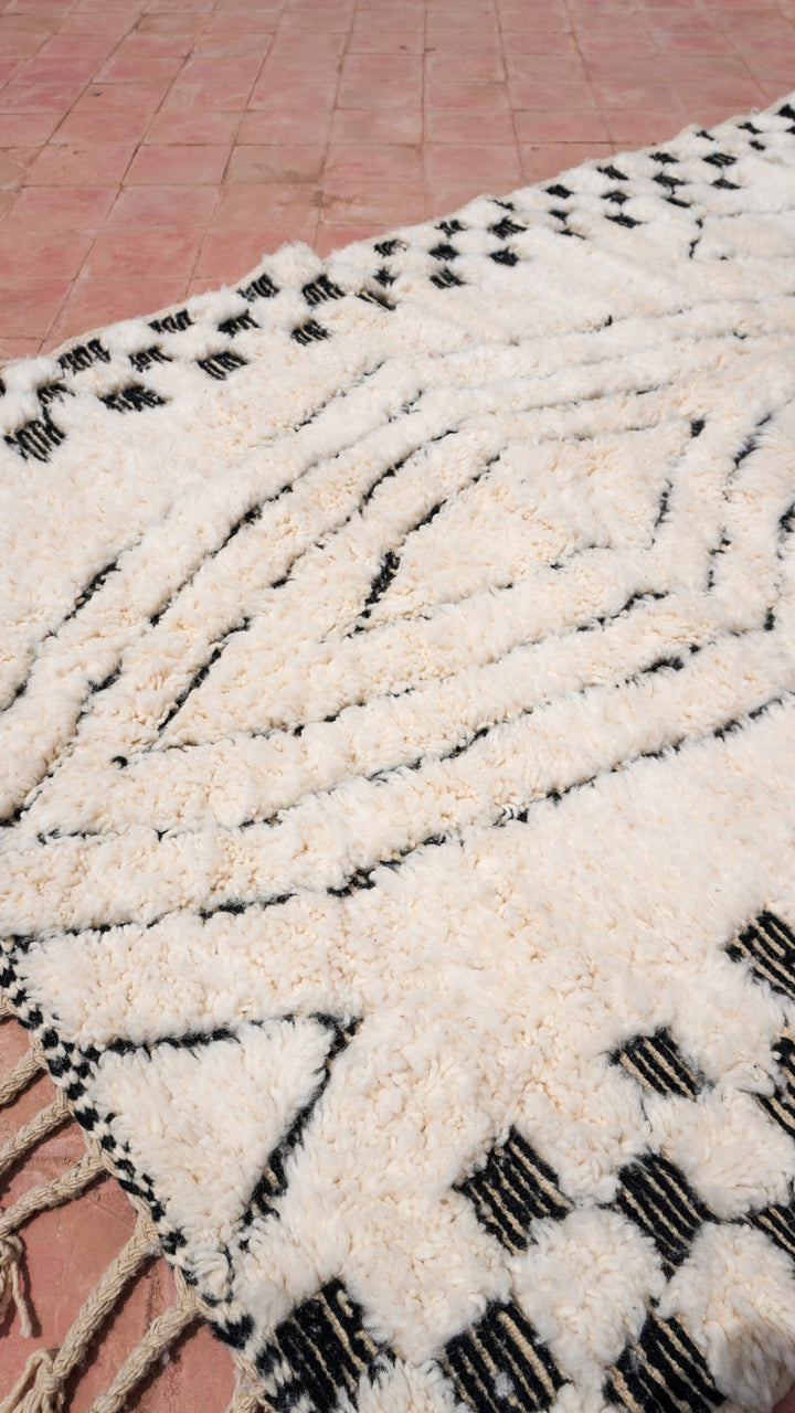 "ZELLIGE": 254cm x 151cm Tapis Beni Ouarain 100% laine