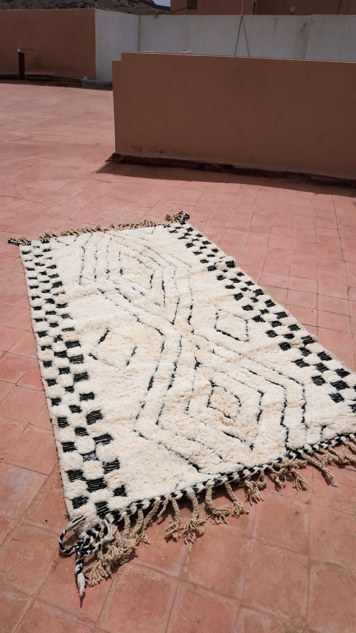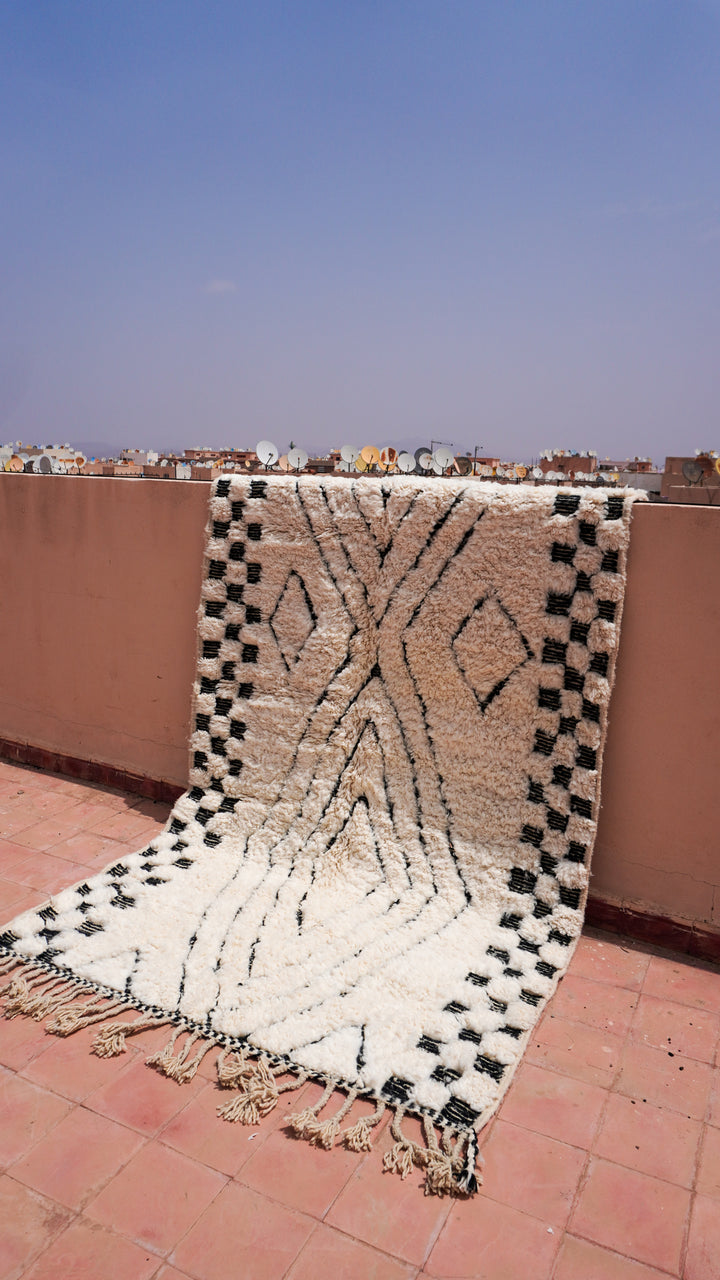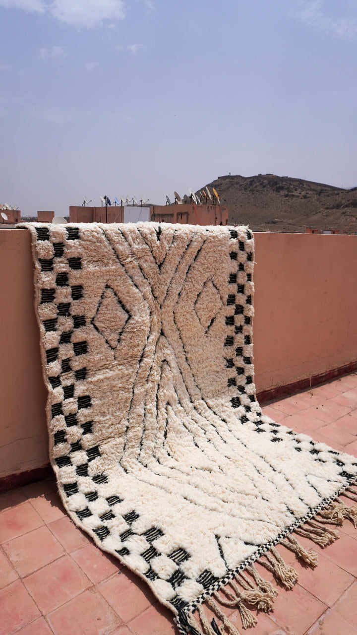 "ZELLIGE": 254cm x 151cm Tapis Beni Ouarain 100% laine